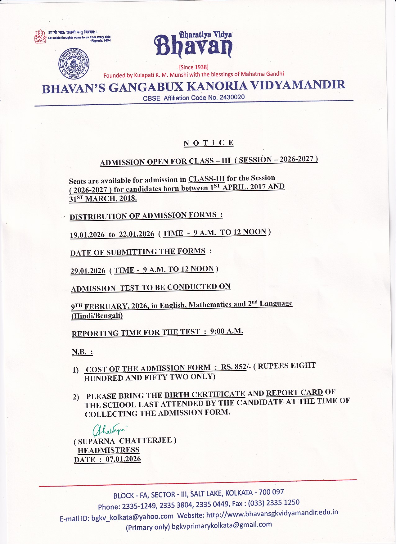 Limited Seats Available For Class-III Admission (Academic Session – 2026-2027)