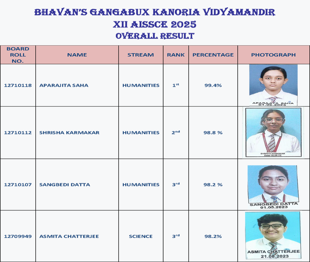 **The details of the results of AISSCE have been updated on the School Website as per the details received from the CBSE Regional Office till 11th July 2025**