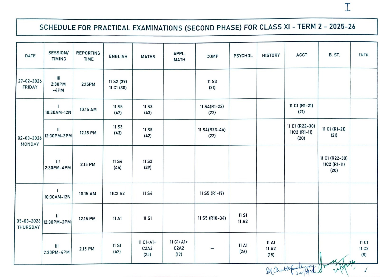 » Schedule for Practical Examinations for class XI (Session : 2025-26) Phase-2 (Date: 27.02.2026-05.03.2026)