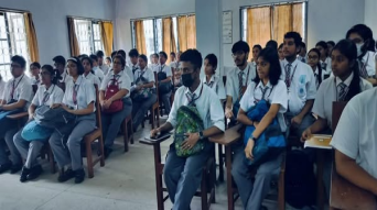 On 12th July 2025, students of Classes IX and X from Bhavan’s Gangabux Kanoria Vidyamandir attended a Science Fair organised by Paschim Banga Vigyan Mancha, Higgs Boson Chakra, Salt Lake, at Bhagabati Devi Balika Vidyalaya. The students explored various science exhibitions and enthusiastically participated in the engaging session “Hate Kalome Bigyan” conducted by Tarun Mukherjee and his team, as well as an insightful astronomy session by Dr. Debi Prasad Duari. Their active interaction with presenters and demonstrators on scientific concepts and observations was appreciated and encouraged by the organisers. (