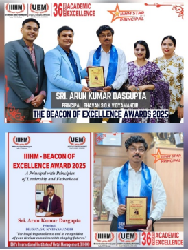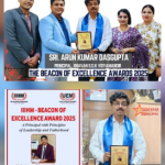 Bhavan’s Gangabux Kanoria Vidyamandir, Salt Lake, is delighted to share that our respected Principal, Sri Arun Kumar Dasgupta, has been honoured with the Beacon of Excellence Award 2025 by IIHM. Celebrated as “an Institution himself – a Principal with Principles of Leadership and Fatherhood”, he has been recognised for his tireless dedication to shaping futures and inspiring excellence.