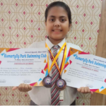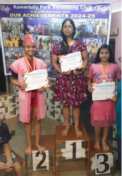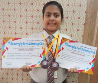 The Annual Aquatic Meet 2025 was held on 14th September 2025 at Kumartully Park Swimming Club, featuring a range of swimming competitions. Nira Chatterjee of Class VI D showcased her talent and determination, securing 3rd place in both Swimming Group B Breaststroke and Swimming Group B Backstroke. She was awarded two bronze medals along with certificates of achievement. Heartiest congratulations to Nira on her commendable performance.