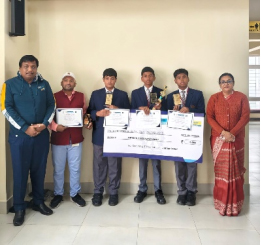 Team BGKV achieved a remarkable milestone by emerging as the 2nd Runner Up in the 7th Edition of the IIT Kharagpur Young Innovators’ Programme (YIP), that took place from 2nd to 4th January 2026, securing a place among the finalists after a highly competitive, multi-stage selection process. In the Semi-Finals, out of 17 outstanding international teams, only six were shortlisted, with Team BGKV distinguishing itself through thorough preparation, clarity of concept, and effective presentation. The team successfully surpassed approximately 1,794 teams in the Junior Category (Classes 8–10) and presented their innovative project, “Jaivik Dhaanyagaaram,” on the prestigious IIT Kharagpur Auditorium stage. The project was appreciated by the judges for its focus on the deserving yet often neglected Annadata (farmers), originality, social relevance, cost-effectiveness, durability, and well-designed model and presentation. The team- Arunit Chakraborty, Bivash Mondal and Diptayan Sahoo of class VIII demonstrated exceptional dedication over 45 days of rigorous preparation and showed commendable resilience while adapting to a demanding schedule during the final rounds.