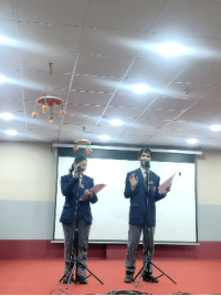 1) Students of class XII participated in an online conference organized by Shikshan Bharti, Bharatiya Vidya Bhavan, Delhi Kendra. The speaker, Adrija Chakraborty, spoke on the harmful effects of “Fast Fashion” on the environment.
